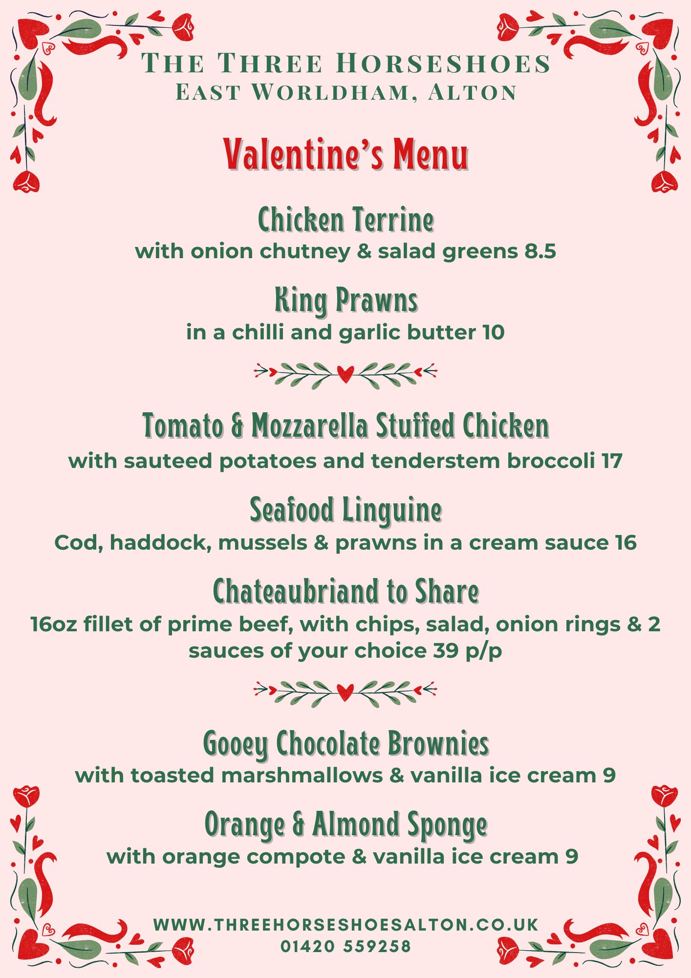 Be sure to keep an eye on this section to find out more about our current specials and to see what exciting events are coming up at The Three Horseshoes, East Worldham! If you need any further information, please Contact Us or ask next time you visit.